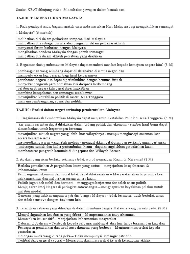 Soalan Kbat Tajuk Pembentukan Malaysia Pdf